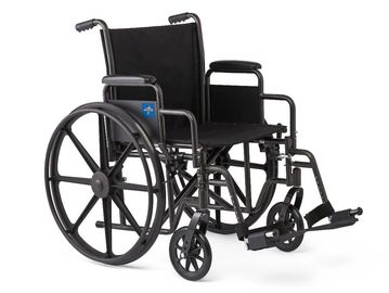 Transport chairs and wheelchairs (1" inches wide) are designed for a caregiver or someone to push, while providing the capability to self-navigate like a manual wheelchair.